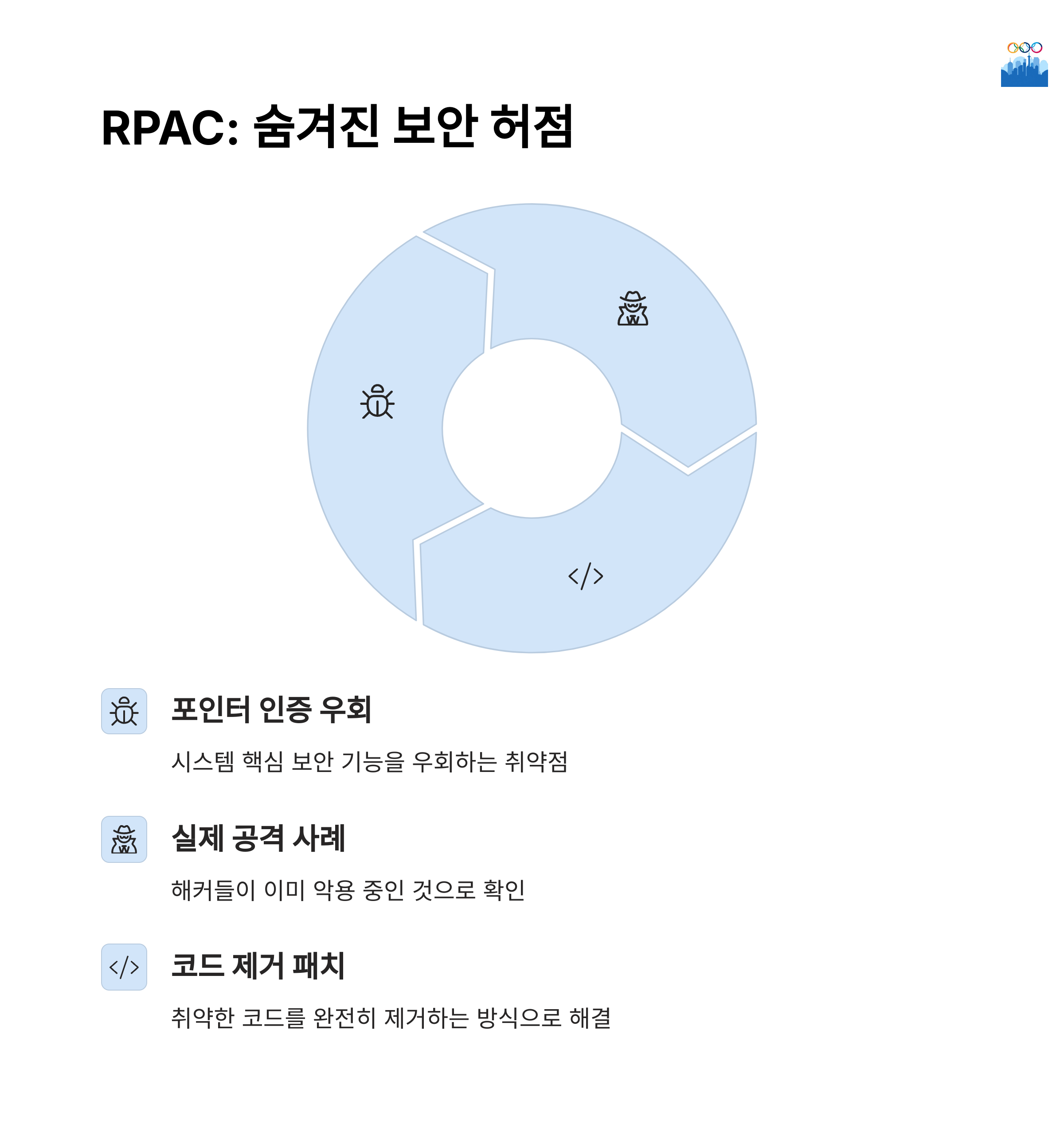 두 번째 취약점은 Pointer Authentication(RPAC) 관련된 문제로, 공격자가 임의의 읽기 및 쓰기 권한을 통해 인증 우회를 시도할 수 있는 심각한 보안 결함입니다. 이 문제는 보안적으로 매우 민감한 부분으로, 애플은 문제가 되는 코드를 아예 삭제함으로써 근본적인 해결을 시도했습니다.