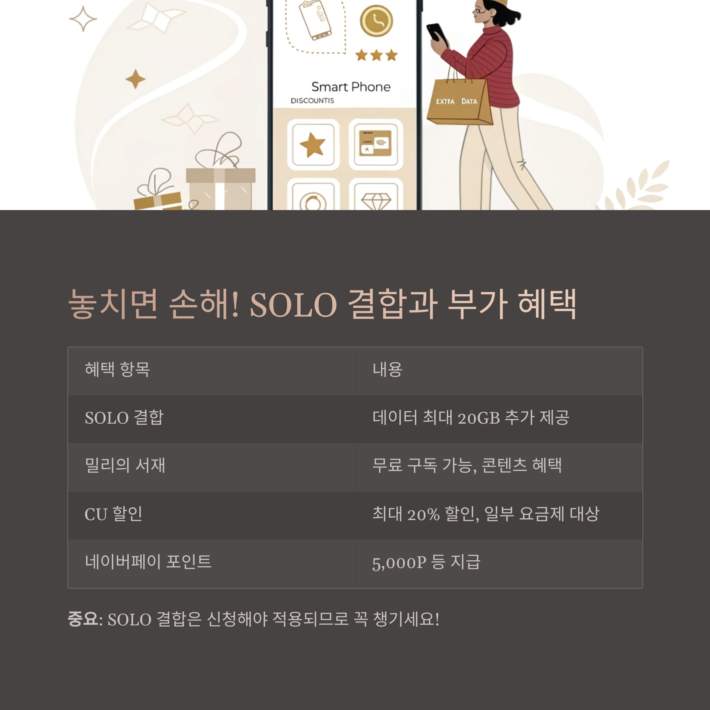 중요: SOLO 결합은 신청해야 적용되므로 꼭 챙기세요!
