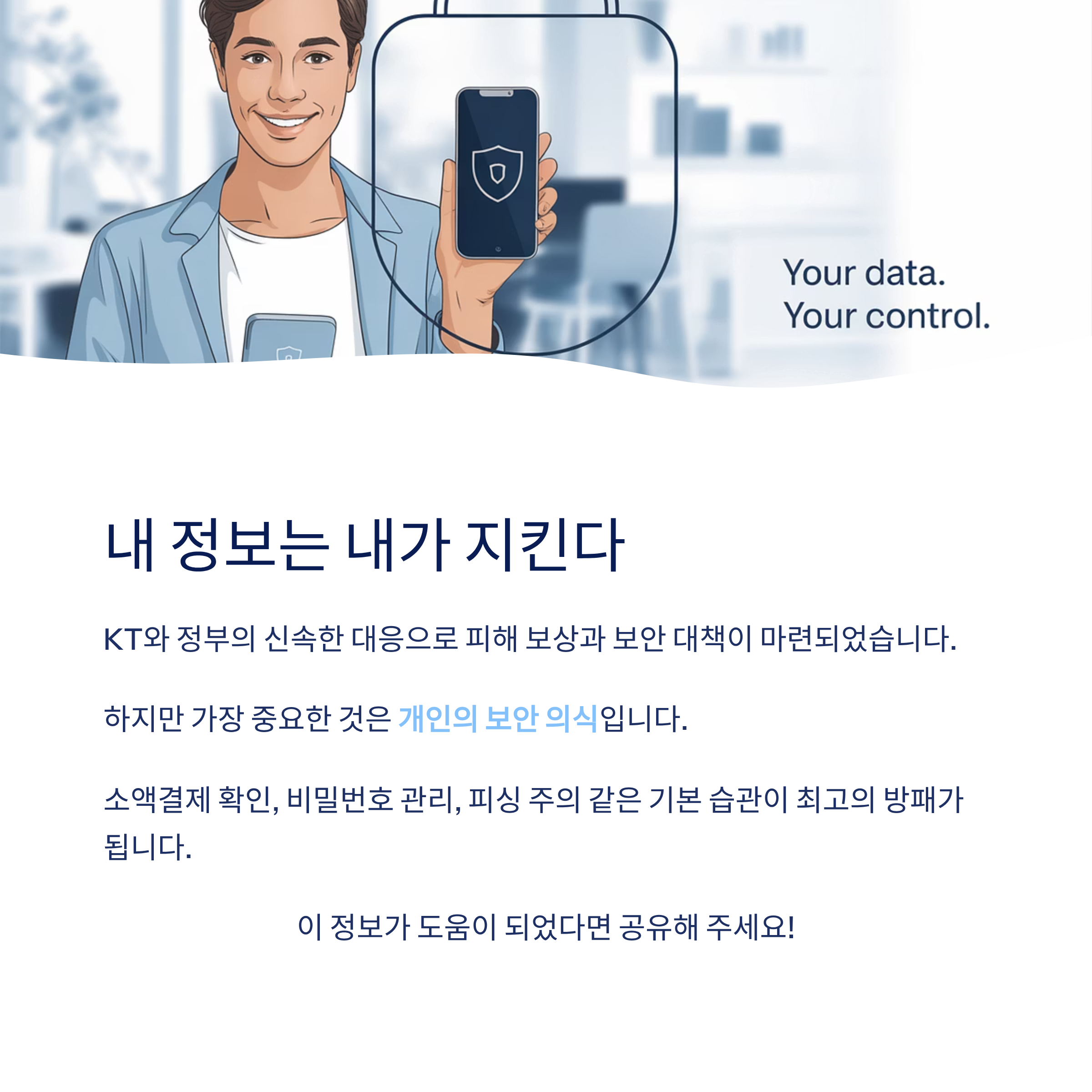 KT 해킹 사건은 단순한 기술적 문제가 아니라, 고객의 일상과 직결되는 민감한 문제입니다. 하지만 다행히도 KT와 정부가 신속하게 대응에 나서고 있고, 피해 고객을 위한 보상과 보안 대책도 마련되고 있습니다.